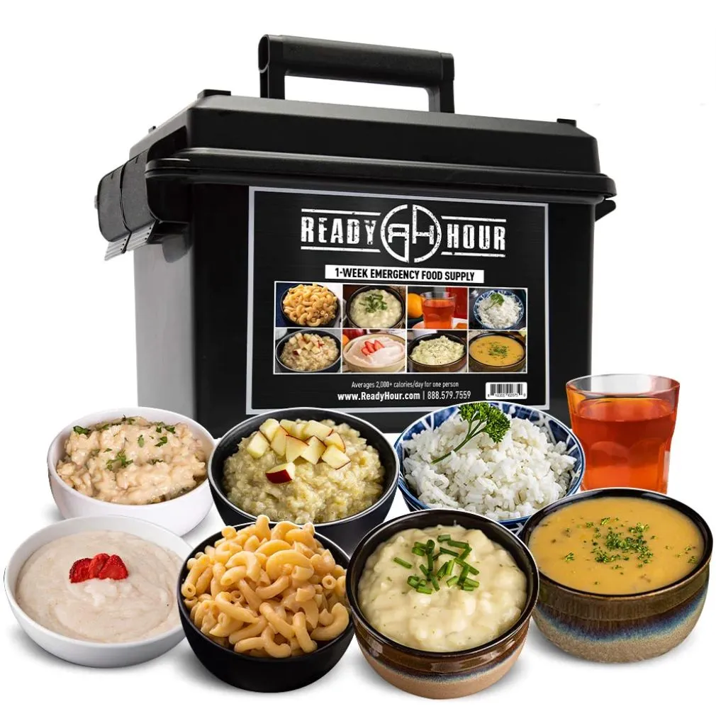 Our 1-Week Food Supply Ammo Can with Ready Hour foods from My Patriot Supply provides one person with an average of over 2,000 calories per day for 7 days.
