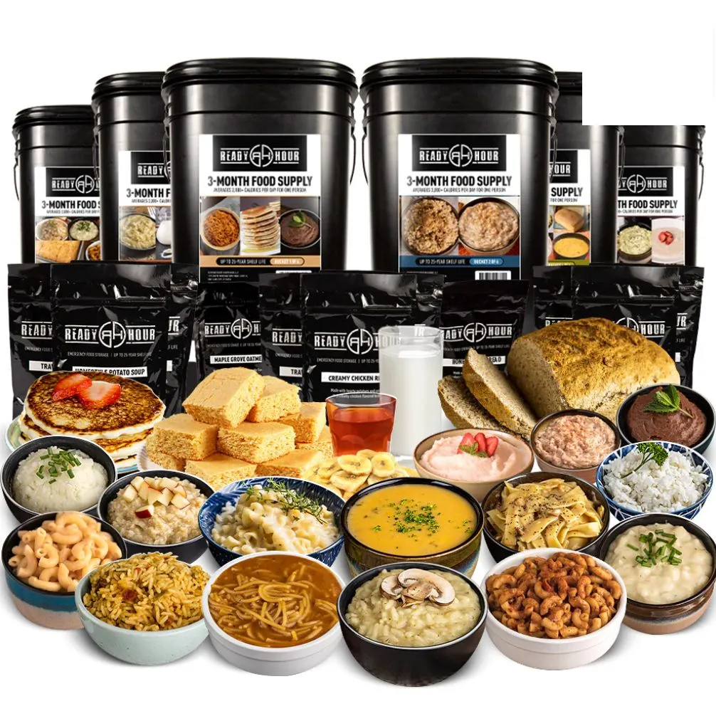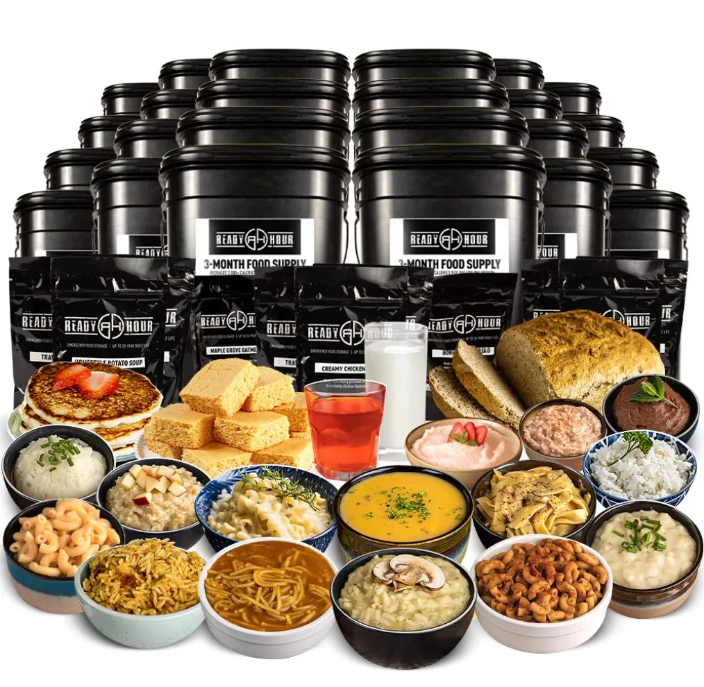 This Ready Hour 3-Month Emergency Food Supply gives you 22 food varieties in thick, ultra-durable packaging for long-term emergencies. It delivers a total of 894 servings. It will feed 1 person for 90 days when eating 2,000 calories per day. Depending on their circumstances, some people may need fewer or more calories.*